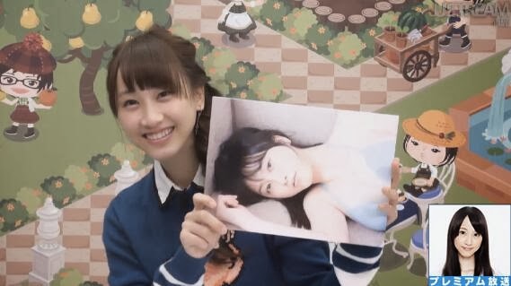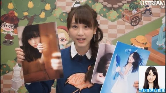 Matsui Rena memamerkan beberapa gambar yang akan ada di photobook terbarunya pada saat di acara Ustream Live.