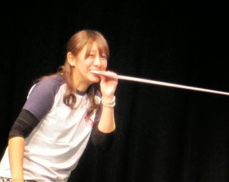 Selama acara, dia ditampar dengan harisen [candaan penggemar], dan dia juga melakukan sesuatu yang sebelumnya belum pernah ia lakukan yakni bermain 'Karet Pacchin'. Saat karet dilepas dan dia terjatuh, pakaian dalam nya terlihat, dan ia pun tetap tertawa senang, "Rasa sakit itu nyata, tapi ini adalah apa yang ingin saya lakukan."